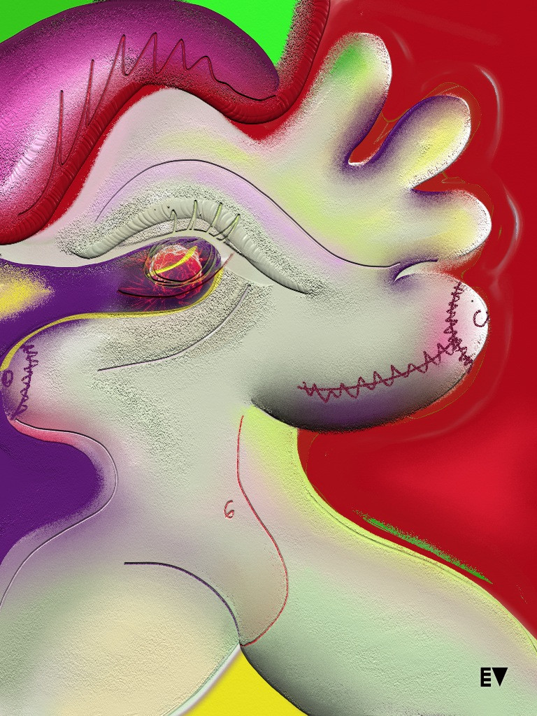 - La serie “fuori da sé” dove le raffigurazioni travalicano i contorni anatomici per assumere quelli delle sensazioni della perdita di controllo dei confini del proprio corpo che si percepiscono nel corso della malattia e dei trattamenti;